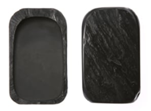 雄勝石皿は最高級の硯にも使われている雄勝石(粘板岩)を切り出して作られています。雄勝石は粒子が均質で光沢があり、吸水率が低く、化学作用や経年にも変質しない性質をもっています。また、温めれば冷めにくく、冷やせば冷たいままといった「保温・保冷性」にも優れているので、料理皿としても実用性に優れた製品です。