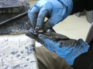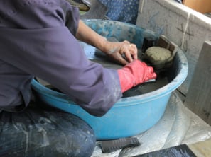 成型しあがった石を砥石、耐水ペーパーを使い丁寧に磨きます。