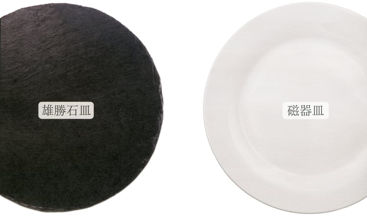 今回、科学的に雄勝石皿の「保温・保冷性」を実証するため、宮城県産業技術総合センターのご協力をいただき、サーモグラフィで雄勝石皿と一般的な磁器の皿の温度変化の計測を行うことで、2種類の材質の皿の保温・保冷性の比較実験を行いました。